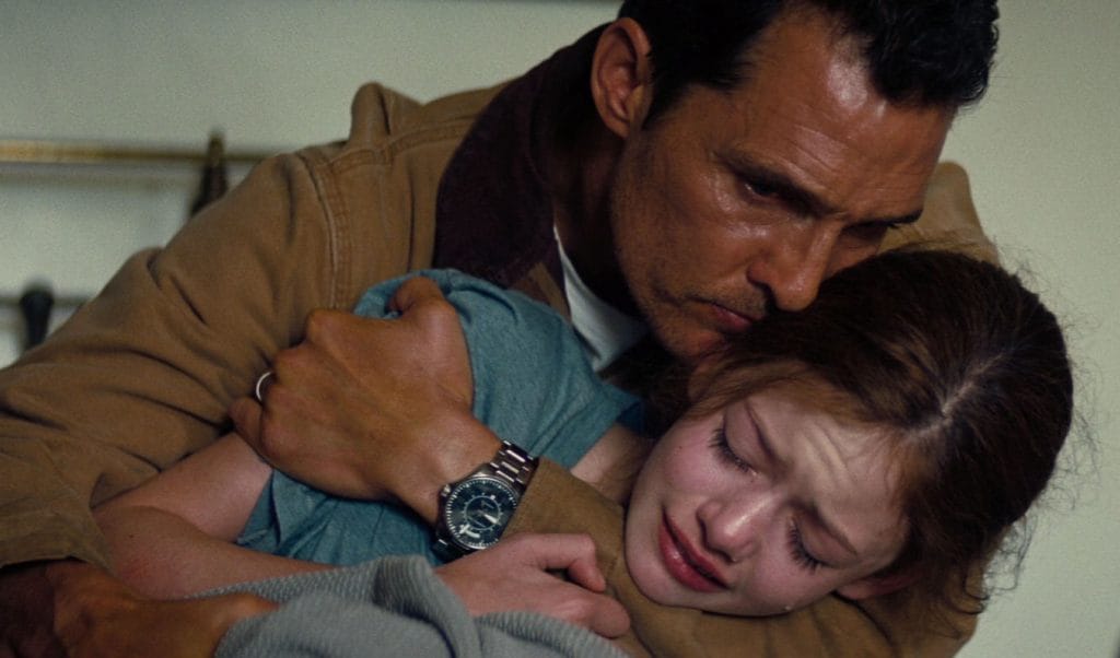 Yet even Cooper’s nostalgia carries the trace of something stranger, a fracture seeded before the story even properly begins. We learn that Cooper’s career as a pilot ended not through choice, but through a crash linked to the very gravitational anomalies that will later open the path to the stars. In retrospect, the crash feels less like random misfortune and more like structural necessity: an unseen hand ensuring that Cooper would carry the wound of loss deeply enough to make the impossible leap when the time came.